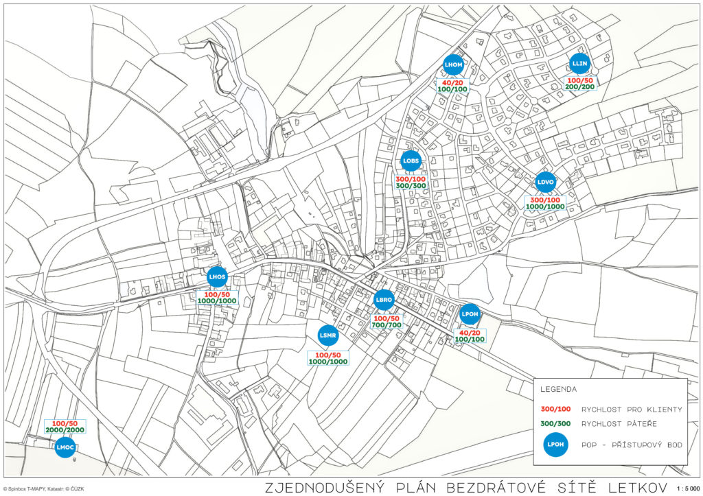 Přívodní spoj pro celou lokalitu Letkov tvoří spoj Ericsson v licencovaném pásmu 18 Ghz s garantovanou kapacitou 2/2 Gbps. Odezvy do internetu jsou v rozmezí 3-10 ms do internetu a internet je tak vhodný i pro aplikace vyžadující rychlou odezvu, stabilitu nebo například hraní online počítačových her.