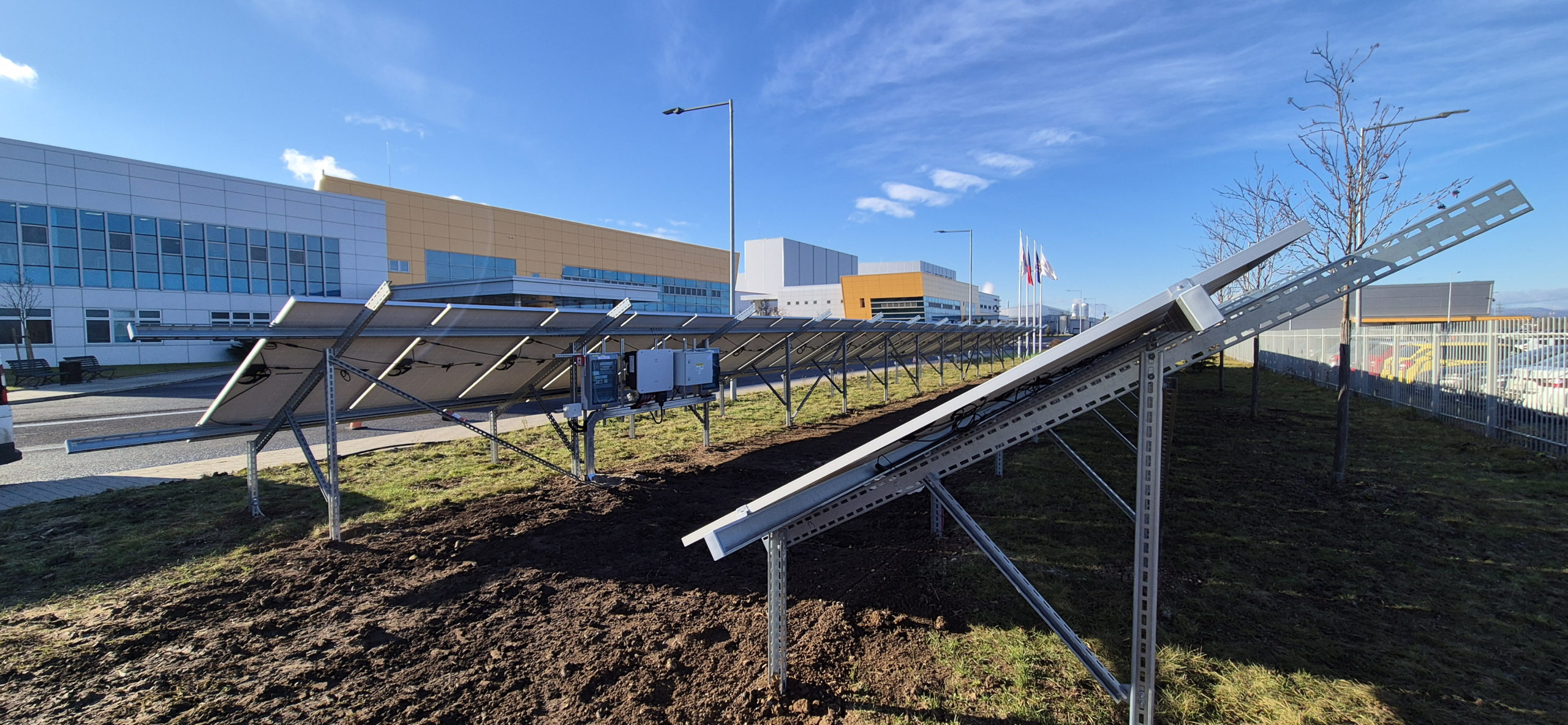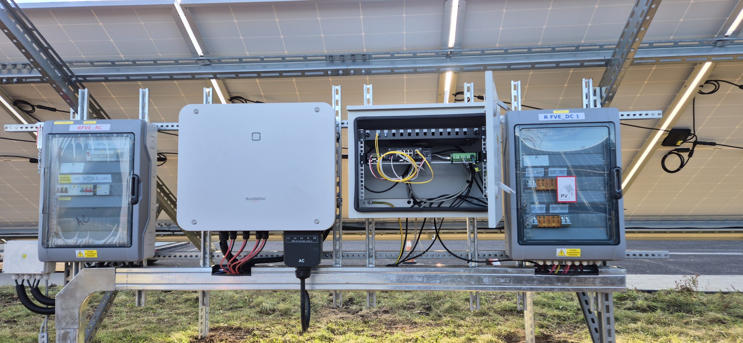 7x panel DAH 455 kW, hybridní střídač GoodWe 5K-ET (budoucí příprava na baterie), AZ router pro dohřev do boileru